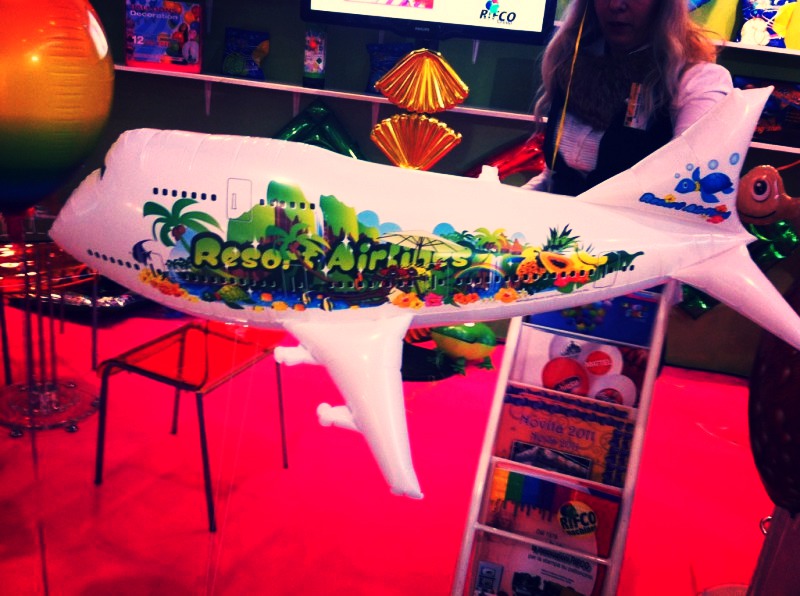 C'est un super ballon avion gonflable à l'hélium, pour l’animation pour salons et promotion des compagnies d’aviation. Ballon gonflable à l’hélium, taille 3 m. Très bel effet en vitrine d’agence de voyage. Le gadget des pilotes.